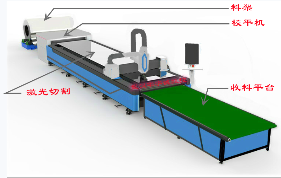卷料備展開后,經(jīng)過了整平這一工序,材料內(nèi)應力便得到了大部分的消除,在通過系統(tǒng)控制的激光切割頭在激光切割平臺上進行的三維運動切割,實現(xiàn)對金屬帶料的自動落料。